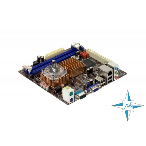 Материнская плата CPU on board, Intel Celeron, Asus ITX 220 (1 PCI, 2 DDR2 DIMM, Audio, Video, Gigabit LAN, CPU)
